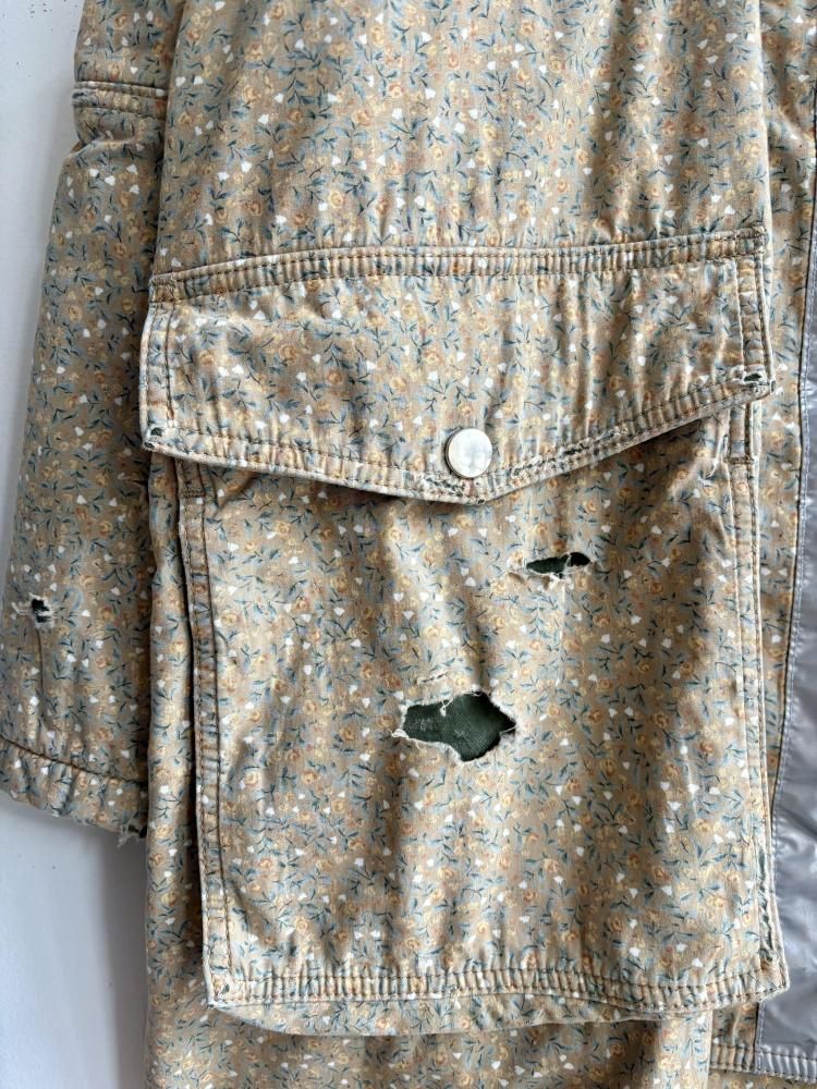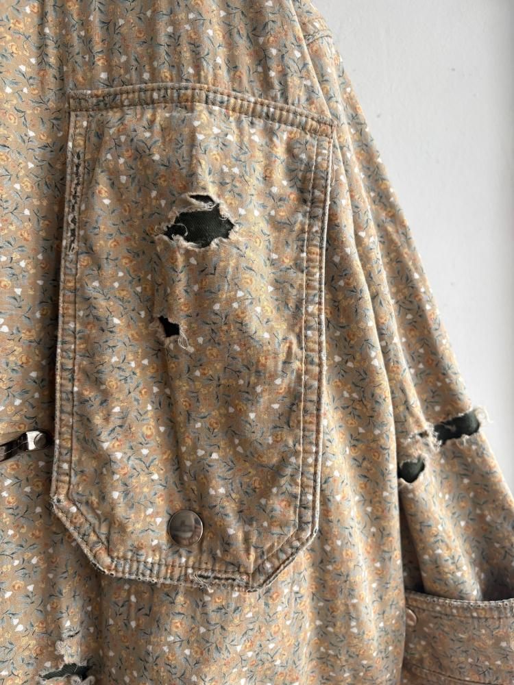 テキスタイルにはダメージ加工が施されており、エレガントな花柄のイメージにグランジテイストも加えた特別な風合いに仕上がっています。